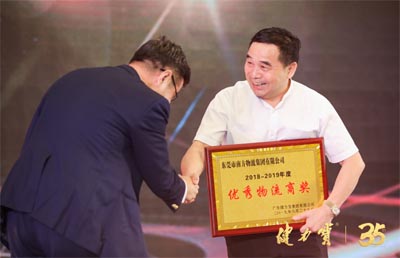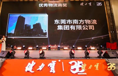 2019年8月28日,在健力寶三十五周年慶典上,東莞南方物流集團(tuán)獲得健力寶“優(yōu)秀物流商獎(jiǎng)”榮譽(yù)。管董事長親自上臺(tái)領(lǐng)獎(jiǎng)。